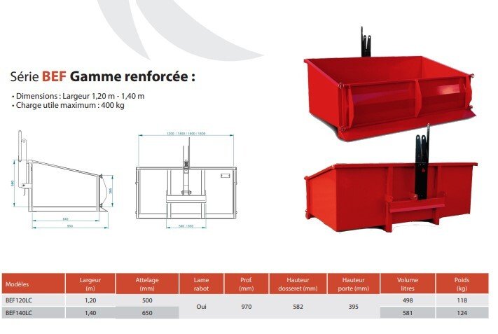 Bennette Loiseau Benne 3 points de 1,20 m