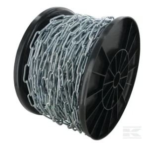 Chaîne à maillons longs soudés, utilisée pour différentes applications. Selon la norme DIN 15003, ces chaînes ne peuvent pas être utilisées en tant qu’élingue, pour le levage ou l’arrimage!