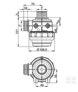 Unité A l’unité Caractéristiques Matériau du boîtier : polypropylène Matériau des joints : EPDM (Viton sur demande) Moyen Eau Se compose de Élément filtrant avec code couleur ISO compris Dérivation Non Matériau de filtration Acier inoxydable Matériau du boîtier Polypropylène HLongueur 23 mm Hauteur 144 mm Diamètre extérieur 106,5 mm Débit min. 20 l/min Débit max. 60 l/min Type d'orifice d'admission Filetage Type de support d’entrée - mâle/femelle Mâle Type de filetage du port d'entrée BSP FDiamètre de filetage de l'orifice d'admission 1-1/4 Inch Longueur du filetage de l'orifice d'entrée 16 mm Type d'orifice d'admission Filetage Type de support de sortie - mâle/femelle Mâle Type de filetage de la sortie BSP Diamètre de filetage de l'orifice de sortie 1-1/4 Inch Longueur du filetage de l'orifice de sortie 23 mm Maillage 50 Surface de filtration 63 cm²