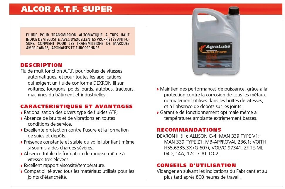 HUILE ALCOR SUPER ATF TRANSMISSION AUTOMATIQUE 5L Landini