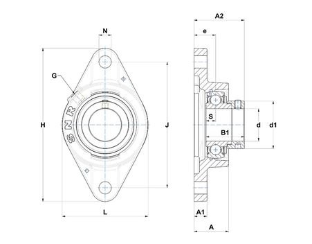 e - Distance entre la surface de montage et le centre du roulement 19 mm