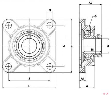 Le Palier - 4 Fixations connu sous la référence UCF210-SNR SNR possède un diamètre d'alésage de 50 mm et un entraxe de fixation de 111 mm. Cette référence est fabriquée en FONTE et le type de serrage se fait par Vis de blocage.