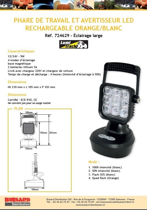PHARE DE TRAVAIL RECHARGEABLE