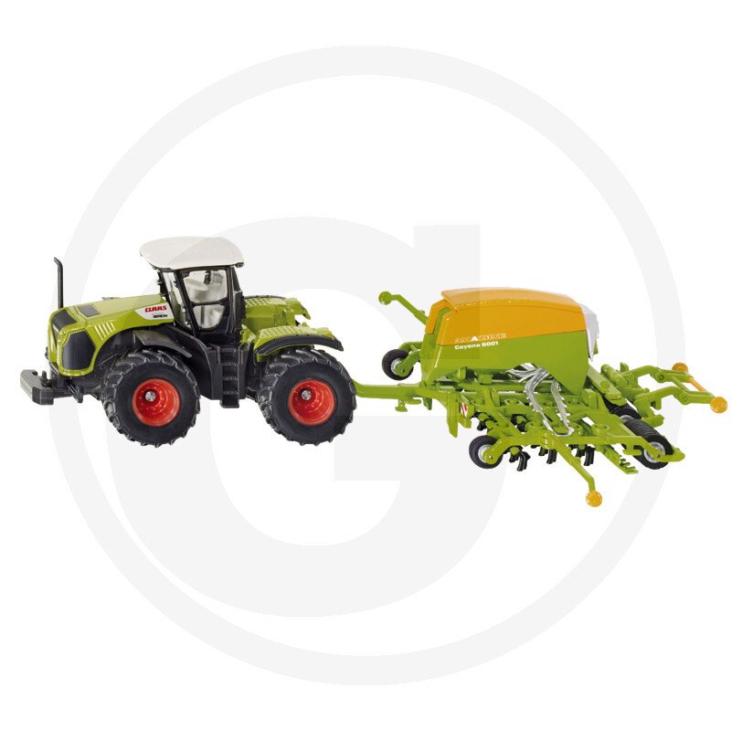 Description: Cette combinaison de spécialistes a depuis longtemps conquis une place dans l'agriculture à grande échelle : le Claas Xerion et le puissant semoir Amazone Cayenna 6001 complètent la combinaison agricole à l'échelle filigrane 1:87.